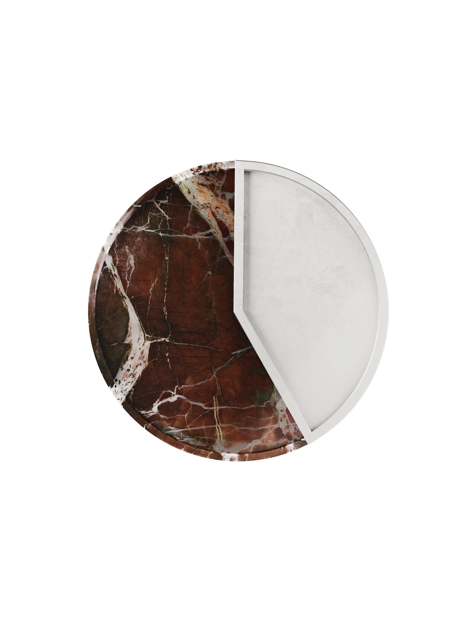 A moment captured in design. The 5 O’CLOCK tray pairs a round marble base with a lacquered aluminum inlay, marking 5pm. A refined companion for drinks, small bites, or whatever your after-hours ritual may be.